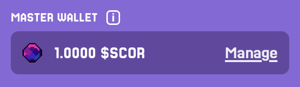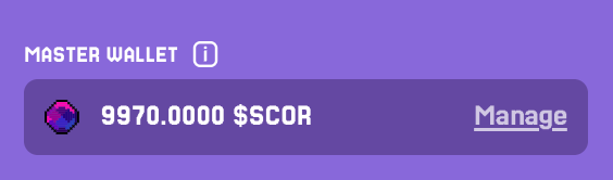 You can think of the Master Wallet as your vault and identity anchor. From here, $SCOR can be moved into your Game Balance whenever you want to participate in competitive modes.